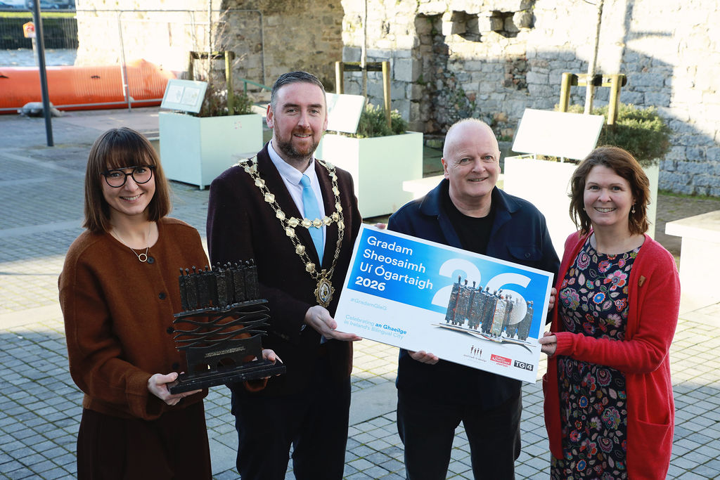 The Mayor of the City of Galway, Cllr Mike Cubbard, announced the sponsors of Gradam 26 at a photoshoot in the Galway City Museum. He was joined by the Cathaoirleach of Gaillimh le Gaeilge, Prof. John Breslin, and the sponsors who have championed the Gradam for over 20 years. Their ongoing commitment highlights the award’s prestige and reflects the surge in interest in the Irish language throughout Galway.